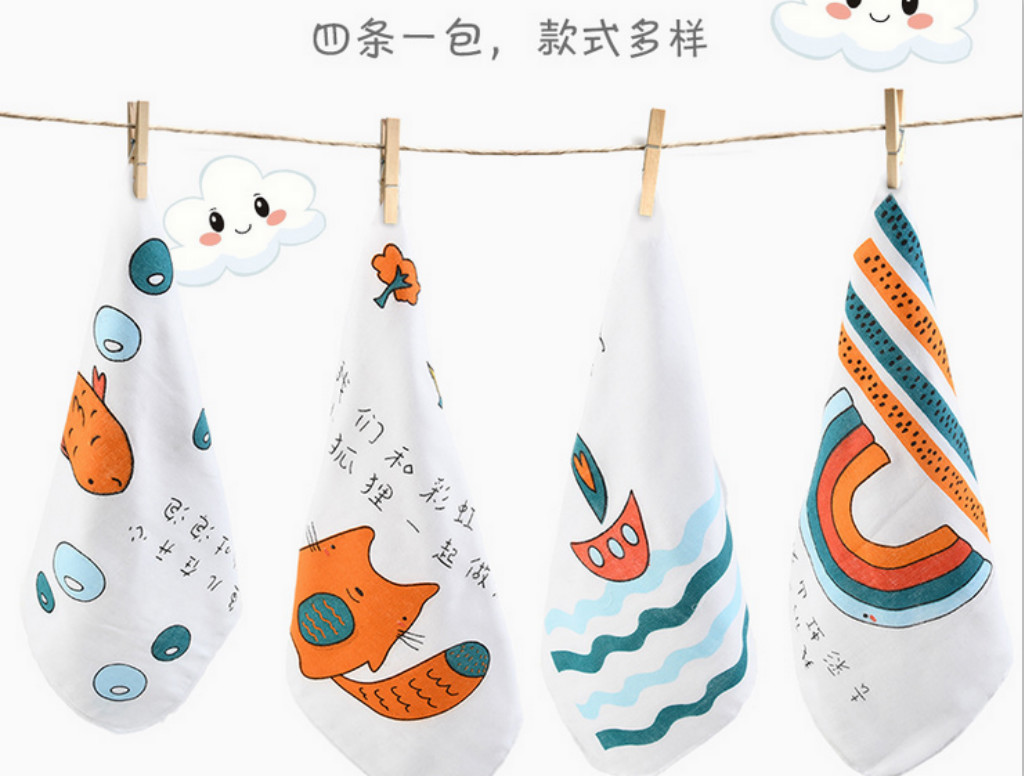 新生兒口水巾寶寶喂奶巾全棉針織嬰兒方巾兒童手絹洗臉手帕套裝